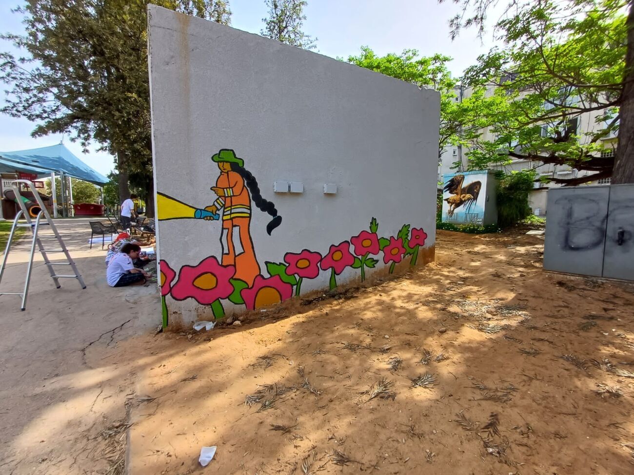ציור על קירות המיגונית בגן רבקה על ידי תיכון קלעי גבעתיים