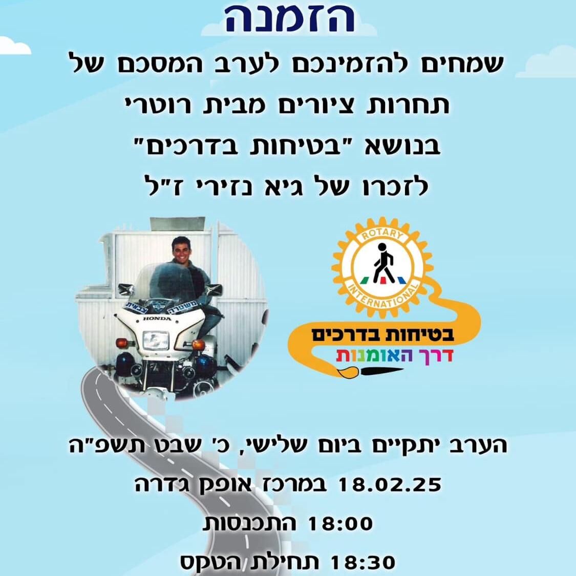 יום שלישי | 18/2 | 18:00 | תחרות הציורים על שמו של גיא נזרי ז"ל – רוטרי הבילויים גדרה | מרכז אופק גדרה