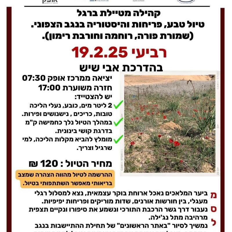 יום רביעי | 19/2 | 7:30 | קהילה מטיילת ברגל – טיול בנגב הצפוני | כרטיסים מוזלים באתר מרכז אופק