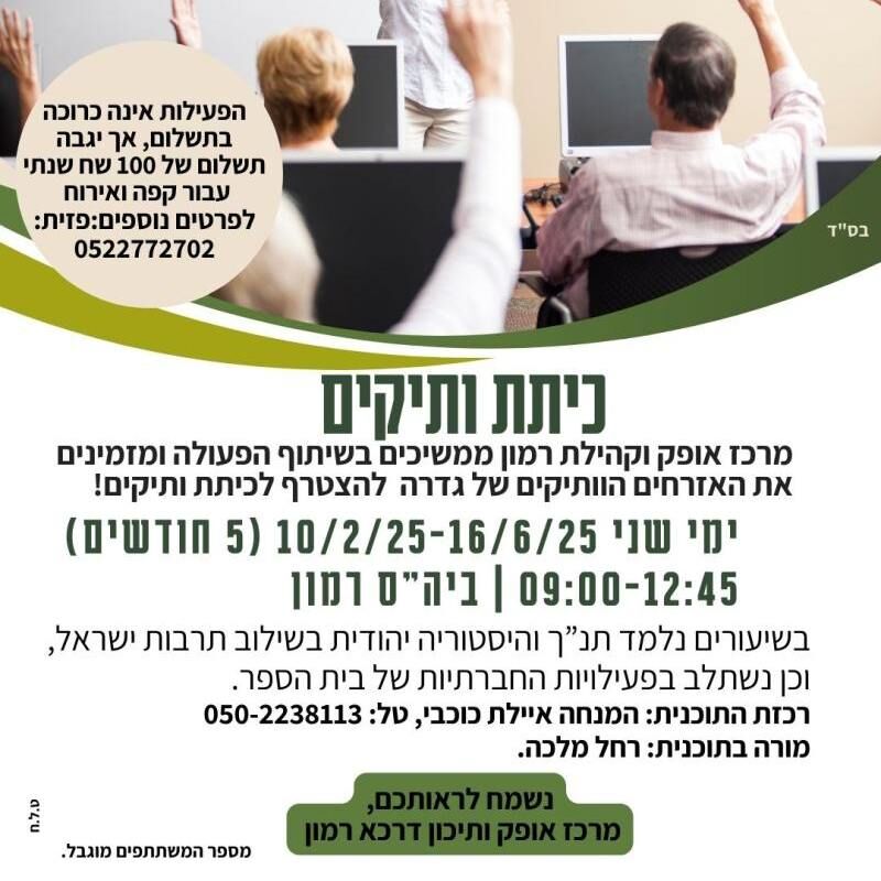 יום שני | 10/2 | 9:00 | כיתת ותיקים | ביה"ס דרכא רמון | הרשמה מרכז אופק