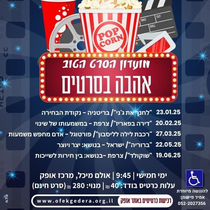 - מועדון הסרט הטוב מציג את הסרט "דירה בפריז" באולם מיכל בשעה 9:45. כרטיסים מוזלים באתר מרכז אופק.