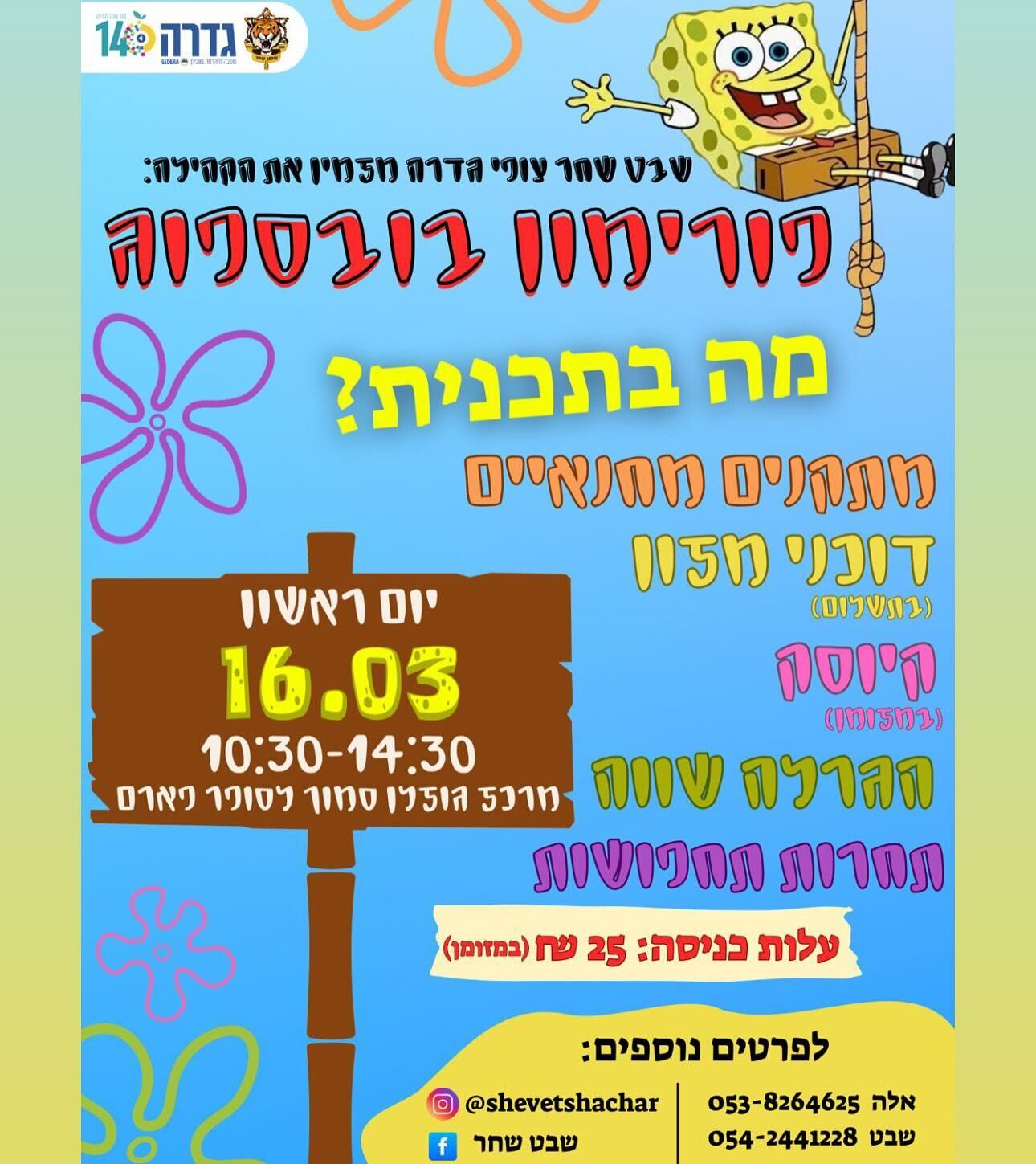 יום ראשון 16.3.25 משעה 10:30 מרכז גוזלן