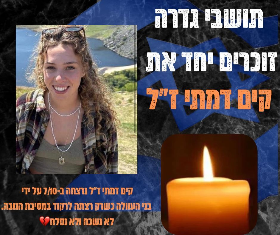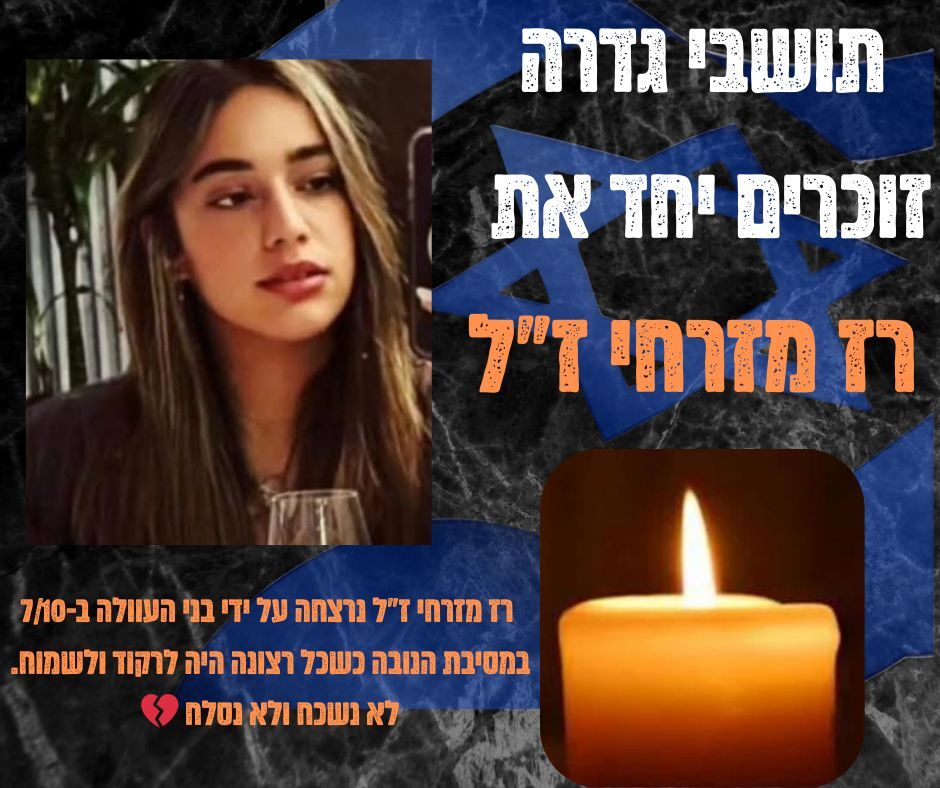 אני מבקשת, שבשבוע הקרוב נחבק את משפחות גדרה שאיבדו את היקר להן מכל מה-7/10 ונזכור ביחד את יקיריהן.