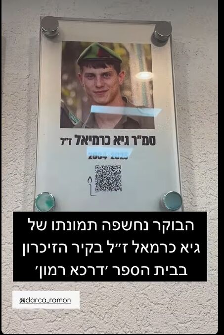הבוקר תיכון רמון בגדרה קיים את טקס קביעת לוח לזכרו של בוגר בית הספר גיא כרמיאל ז"ל, אשר נפל בעת מילוי תפקידו. במהלך הטקס שמעו התלמידים את הסיפורים על גיא. לאחר הטקס יצאו צוות, תלמידים ותלמידות ל"צעדה לזכרם" מבית הספר לגן שבע, שם קיימו עצרת קצרה לזכרם של נופלי חרבות ברזל מהמושבה.