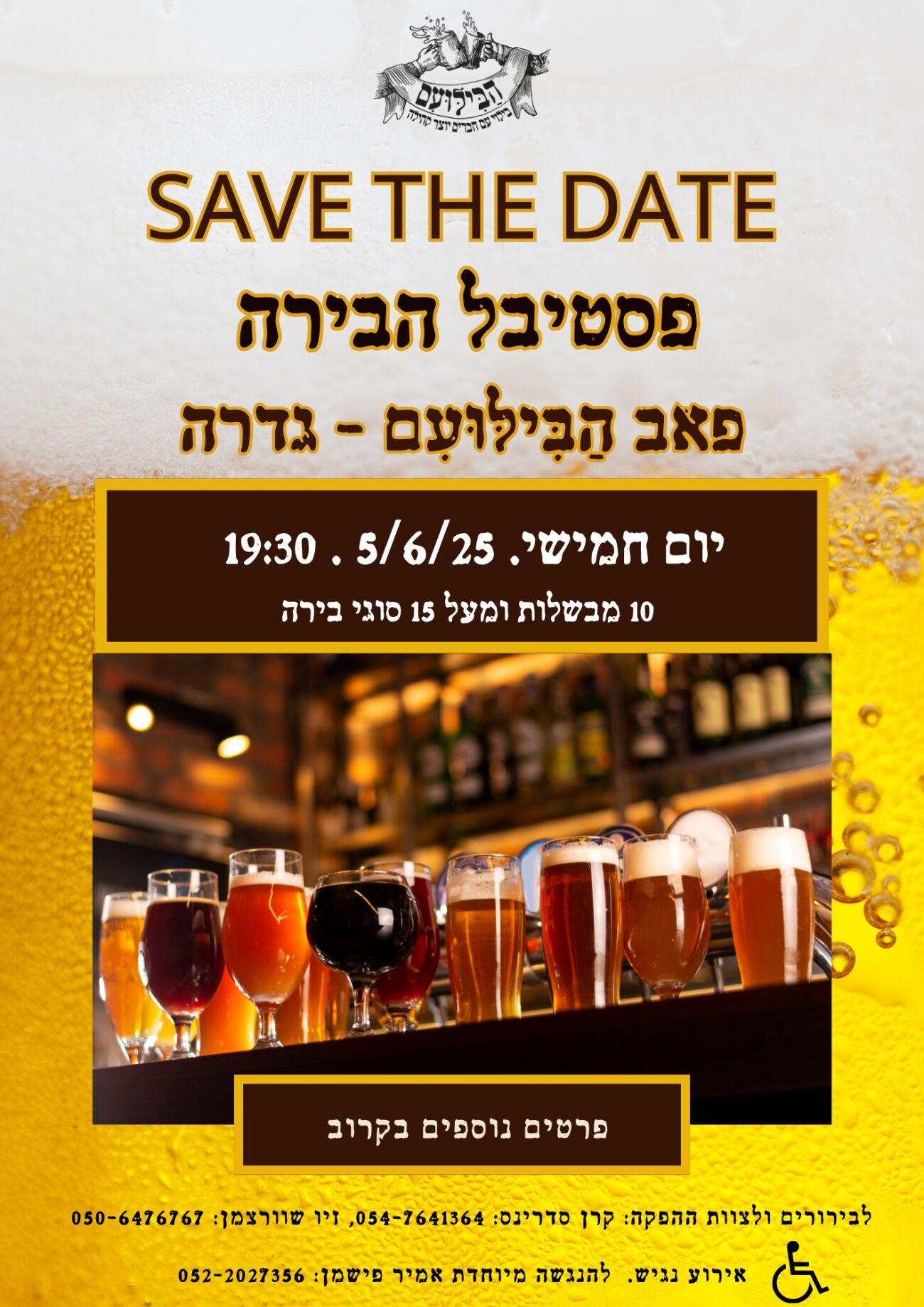 בנוסף ביום חמישי 5.6 יתקיים פסטיבל הבירה של גדרה!