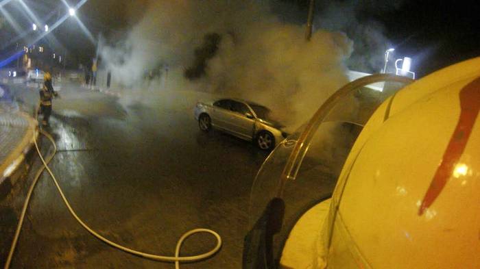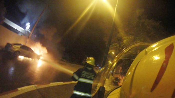 מבזק... רכב עלה באש בגדרה... נבדק חשד להצתה... עדכון לידיעה: נבדק חשד לרימון או לבקבוק תבערה