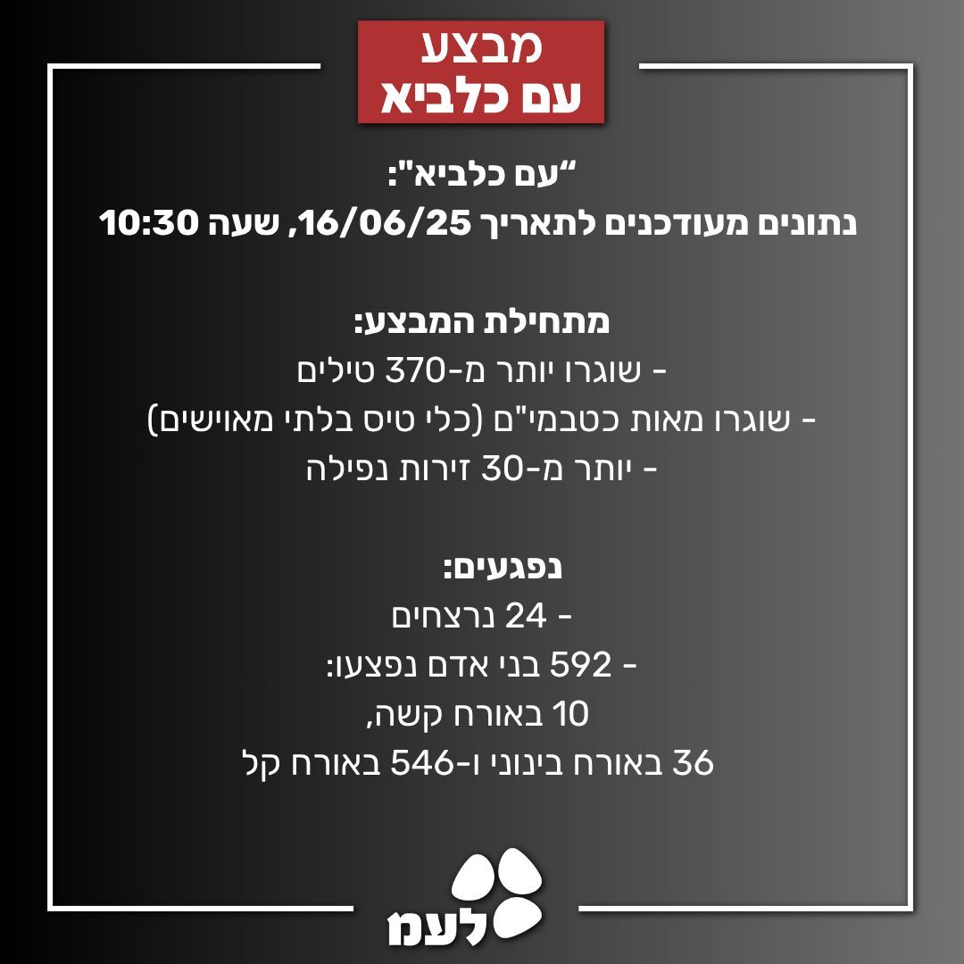 מחירי המלחמה! מאז תחילת מבצע עם כלביא שוגרו לישראל יותר מ370 טילים ומאות כטבמים, מספר האבידות בנפש עומד על 24