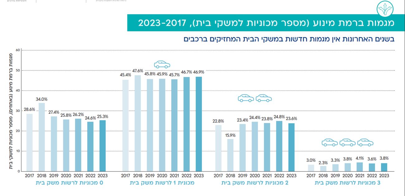 הנתונים מראים לאורך השנים לא חלו שינויים גדולים במספר הרכבים במשקי הבית בישראל