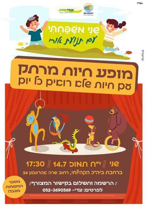 שני משפחתי בגדרה: תנועת "אורי" מזמינה את הציבור למופע חיות מרתק לכל המשפחה, מספר המקומות מוגבל