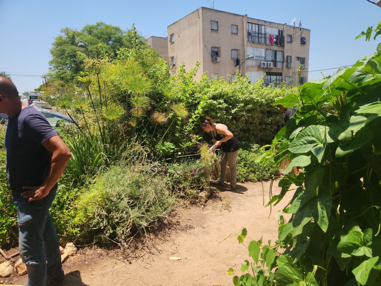 בזמן הסיור הם גילו מעבר לכביש, בחצר בניין שפירא 1 את הגינה שהקימו התושבים עם שיחי תבלין, עגבניות שרי סגולות, שעועית ועוד...הכל בשיטות חקלאיות מסורתיות של התושבים הותיקים ועם המון אהבה לטבע.