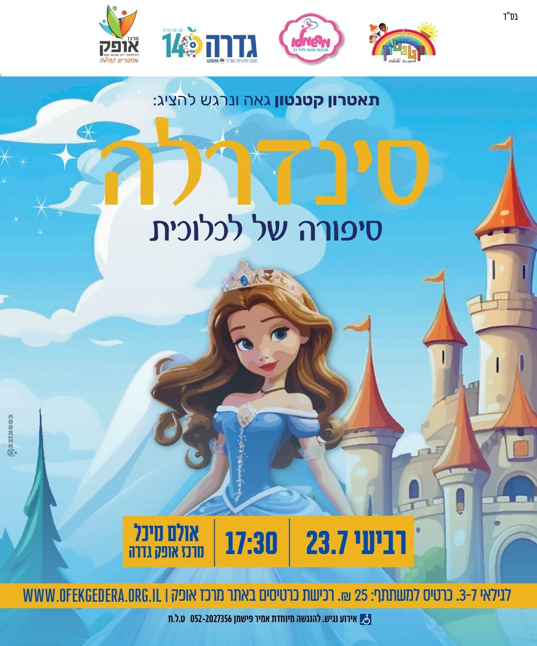 יום רביעי | 23.7 | 17:30 | אירועי קיץ : "סינדרלה" / תיאטרון קטנטון | מתאים לילדים בגילאי 3-7 | אולם מיכל, מרכז אופק | כרטיסים מוזלים באתר מרכז אופק