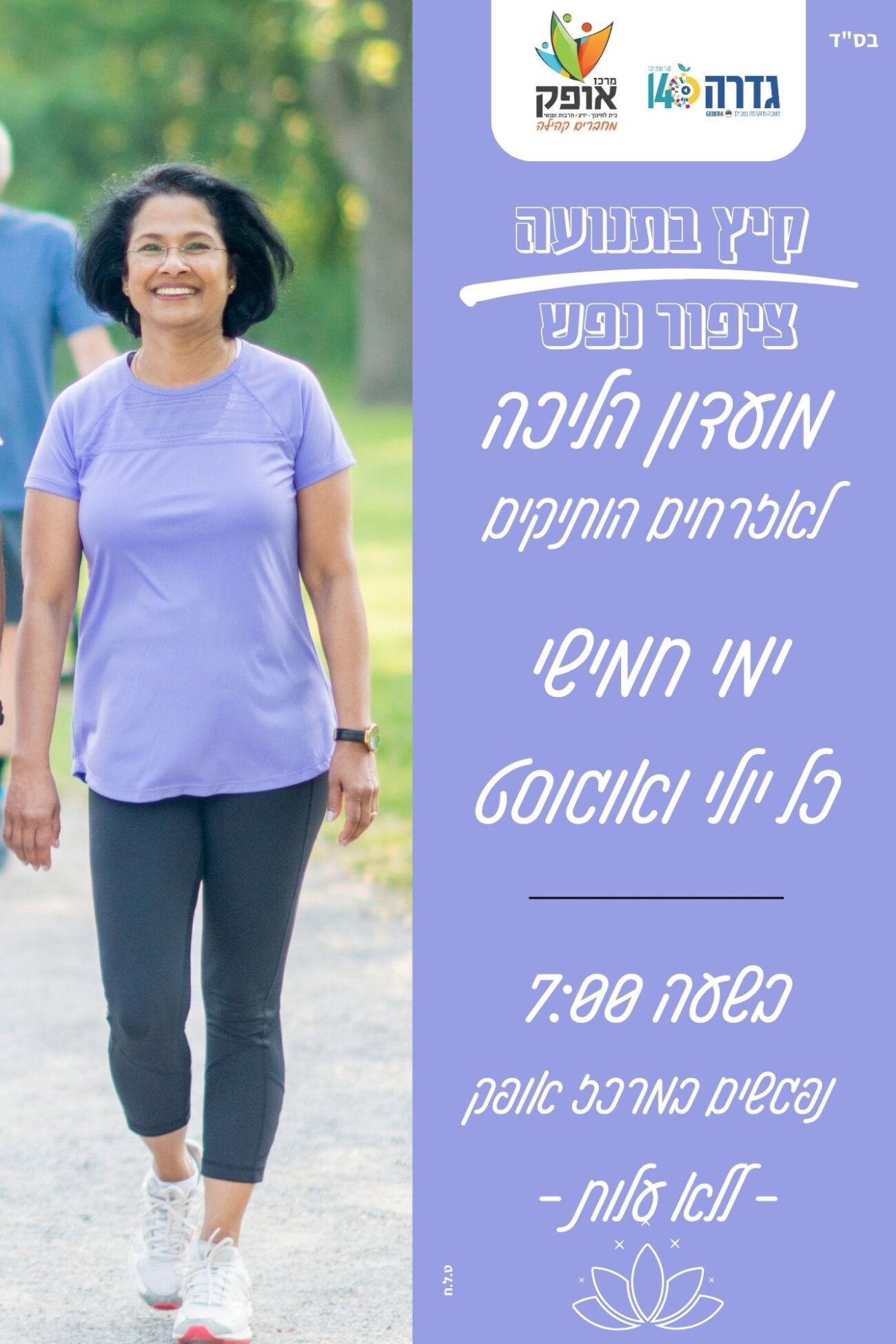 יום חמישי | 24.7 | 7:00 | אירועי קיץ: מועדון הליכה לאזרחים ותיקים | נפגשים במרכז אופק | ללא עלות