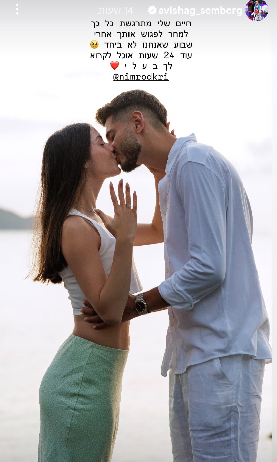 בפוסט שהעלתה אמש כתבה לבעלה לעתיד: "חיים שלי מתרגשת כל כך למחר לפגוש אותך אחרי שבוע שאנחנו לא ביחד. עוד 24 שעות אוכל לקרוא לך בעלי".