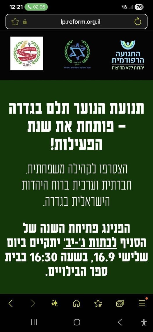 לפרטים נוספים ניתן למצוא בקישור: https://lp.reform.org.il/telem-gedera/
