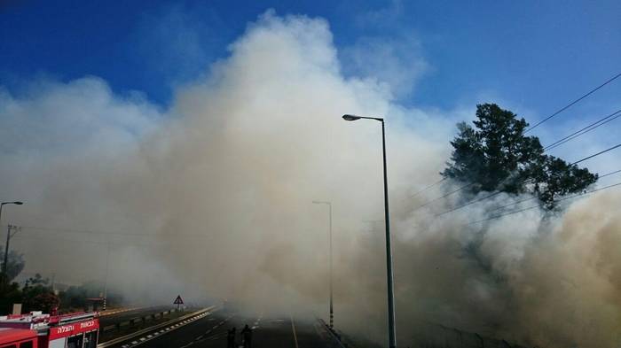 חשד כי השריפה הגדולה בכביש 40 מול גדרה מקורה בהצתה