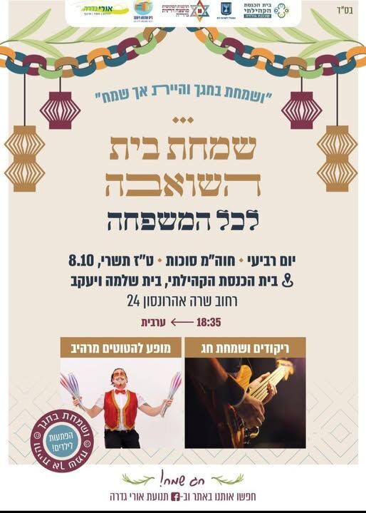 תנועת "אורי" גדרה תקיים הערב, יום רביעי 8/10, אירוע חגיגי ושמח לכל המשפחה לציון "זכר לשמחת בית השואבה".