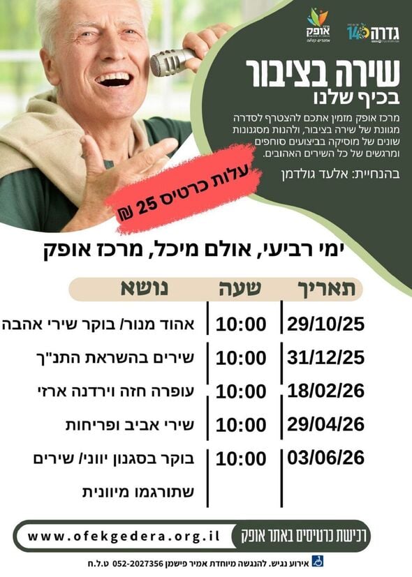 מחר (רביעי 29.10) יתקיים אירוע שירה בציבור במרכז אופק