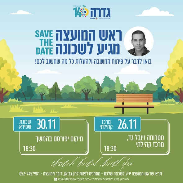 סהר פינטו מגיע לשכונה: שני מפגשים יתקיימו בחודש נובמבר לתושבי סטרומה, יובל גד ושפירא בגדרה