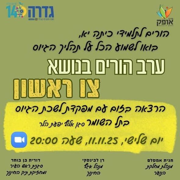 הורים המעוניינים להשתתף מוזמנים להצטרף באמצעות הקישור: https://did.li/GederaZoom25.