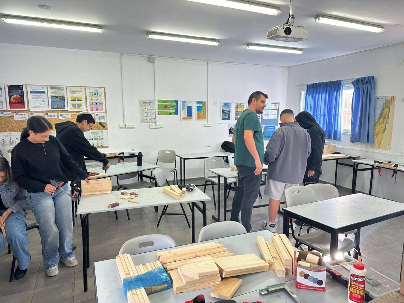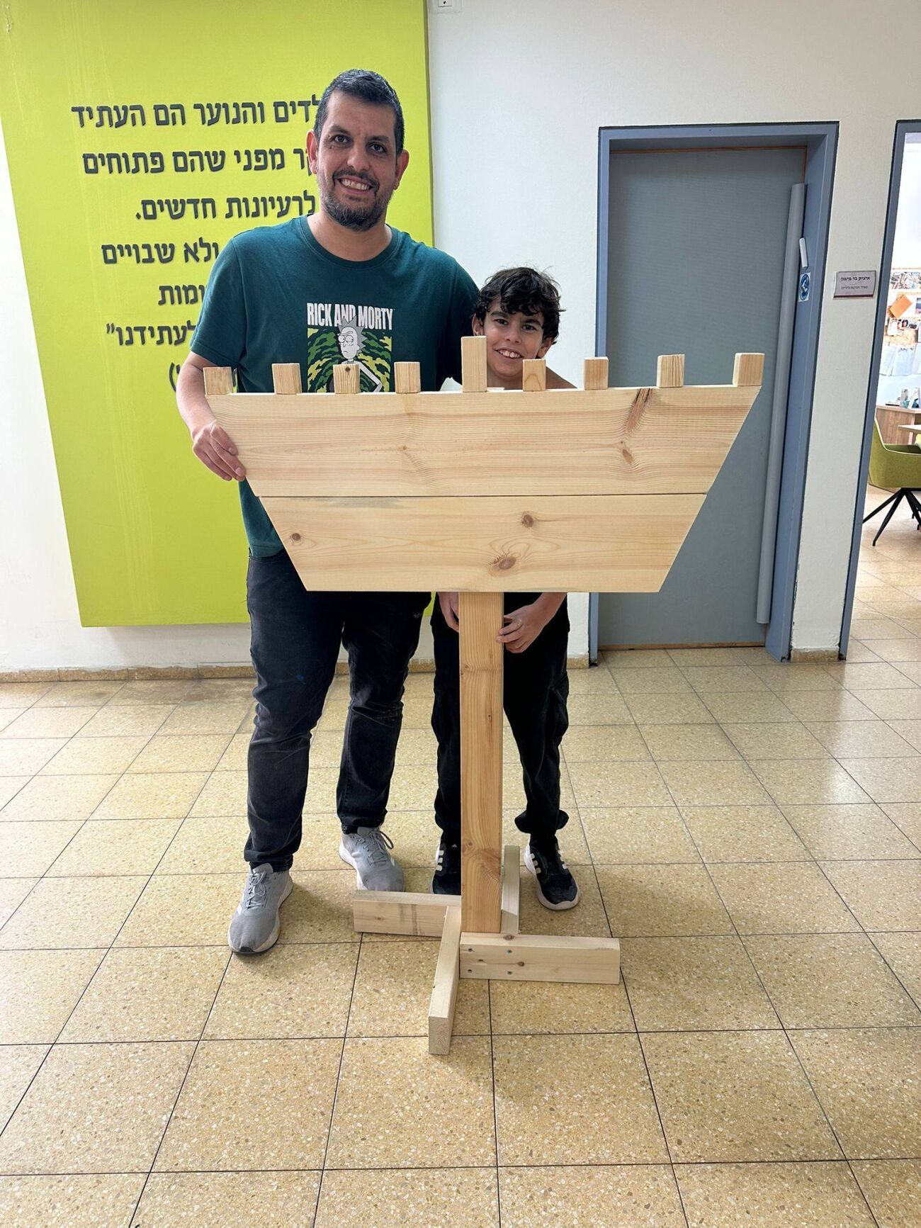 תלמידי תיכון דרכא רמון בגדרה בנו חנוכייה במסגרת שיעור נגרות