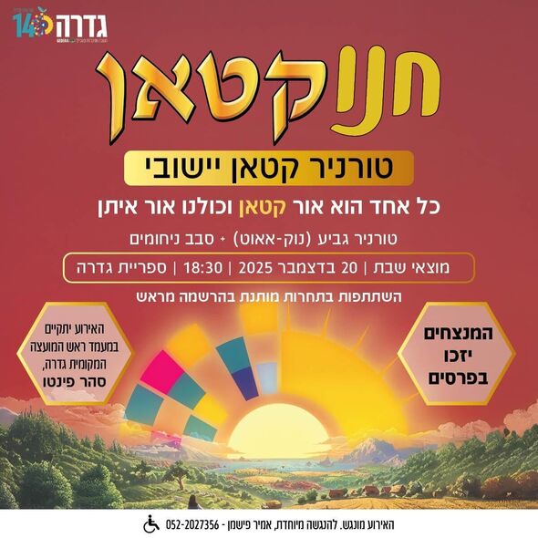 "חנוקטאן": אליפות הקטאן הרשמית של גדרה תתקיים במוצ"ש 20.12 בספריית גדרה