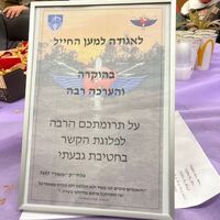 יו"ר האגודה יגאל גלסנר הציג את המשך הפעילויות לשנת 25/26 עם האגודה למען החיילים מפקד הבסיס העניק לסניף תעודת הוקרה והערכה רבה על פעילויות עם האגודה.