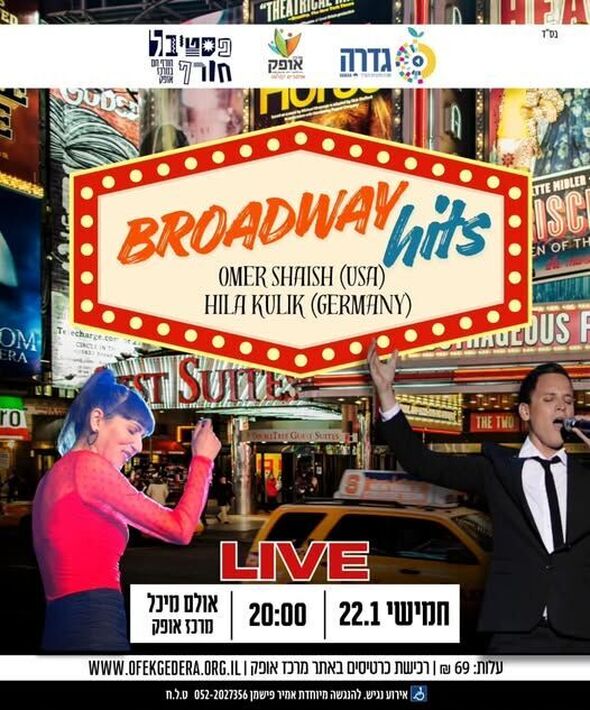 ביום חמישי ה-22.1 הברודווי מגיע לגדרה: הילה קוליק ועומר שיש במופע דואט שירה ופסנתר במרכז אופק