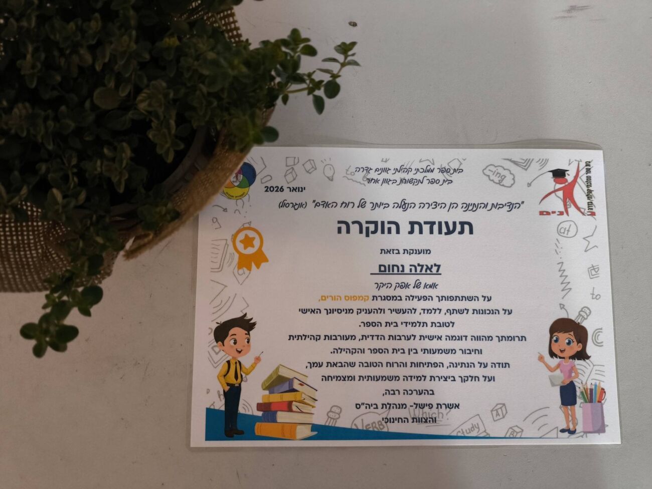 תודה נמסרה להורים שלקחו חלק במיזם וחשפו את התלמידים לעולמות חדשים. כמו כן, הובעה הערכה להנהגת ההורים ולימית דהן, נציגת הנהגת ההורים, על הובלת המיזם בשיתוף עם רינת מדר, סגנית מנהלת בית הספר.