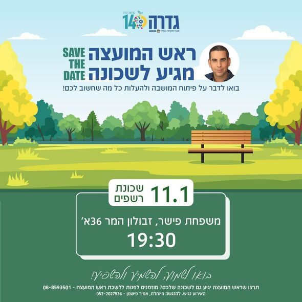 ראש המועצה המקומית גדרה, סהר פינטו, יגיע למפגש תושבים בשכונת רשפים ביום ראשון ה-11.1