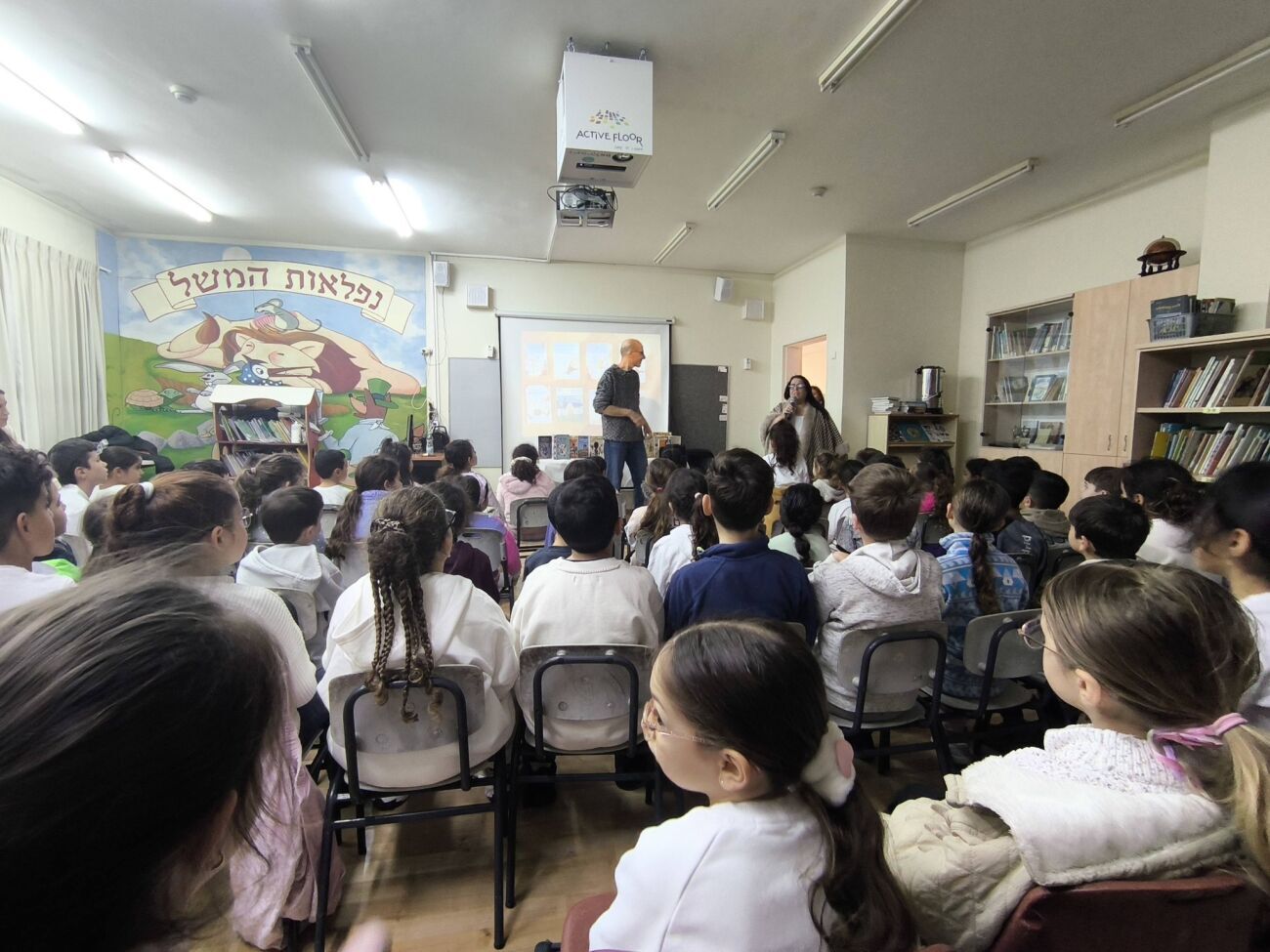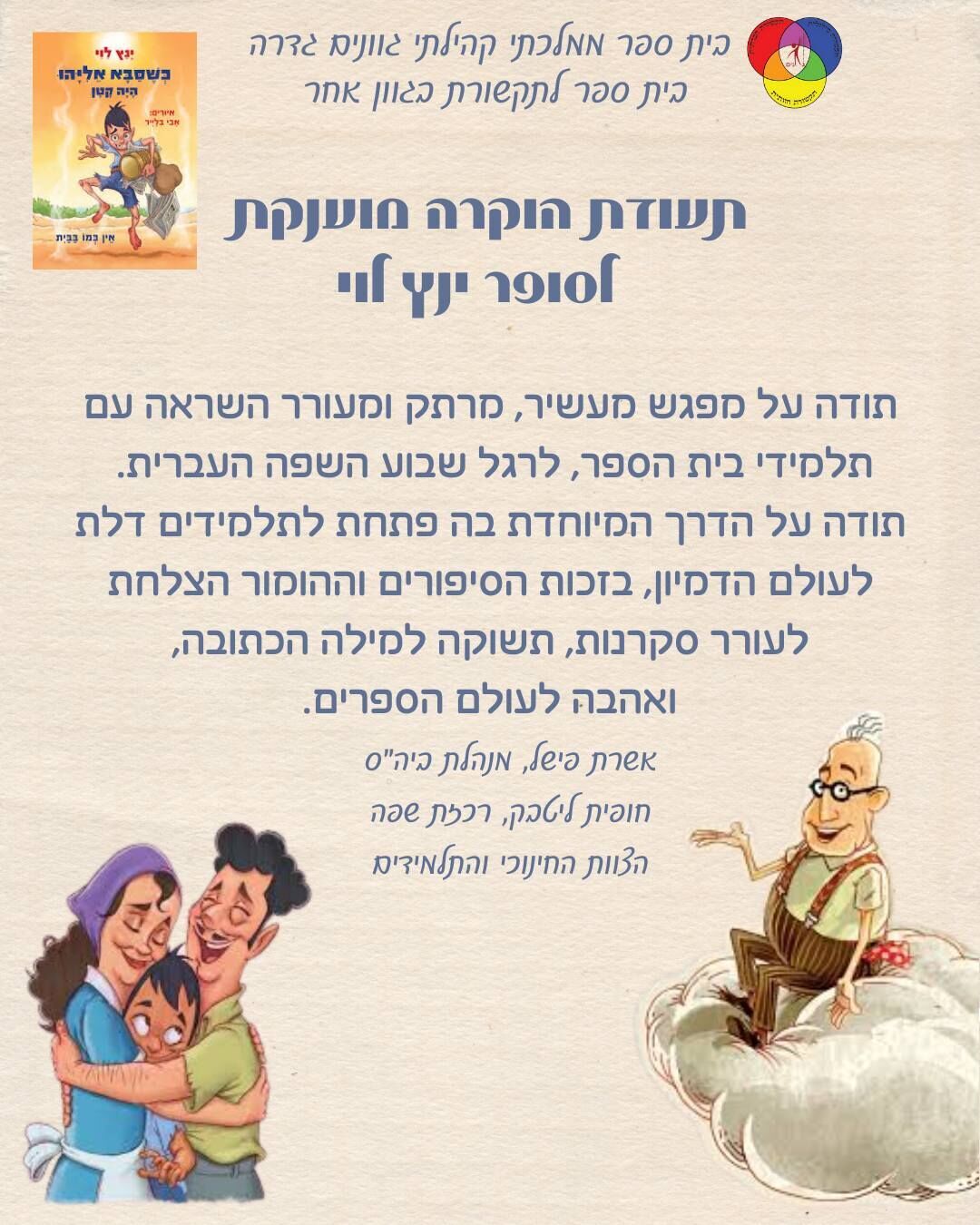 סופר הילדים והנוער ינץ לוי הגיע לבית הספר "גוונים" בגדרה למפגש עם תלמידי שכבות א׳–ד׳ לציון שבוע השפה העברית