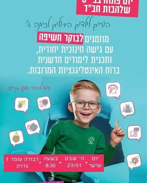 בית הספר שלהבות חב"ד בגדרה מזמין הורים ליום היכרות פתוח שיתקיים ביום שישי ה-23.1.26