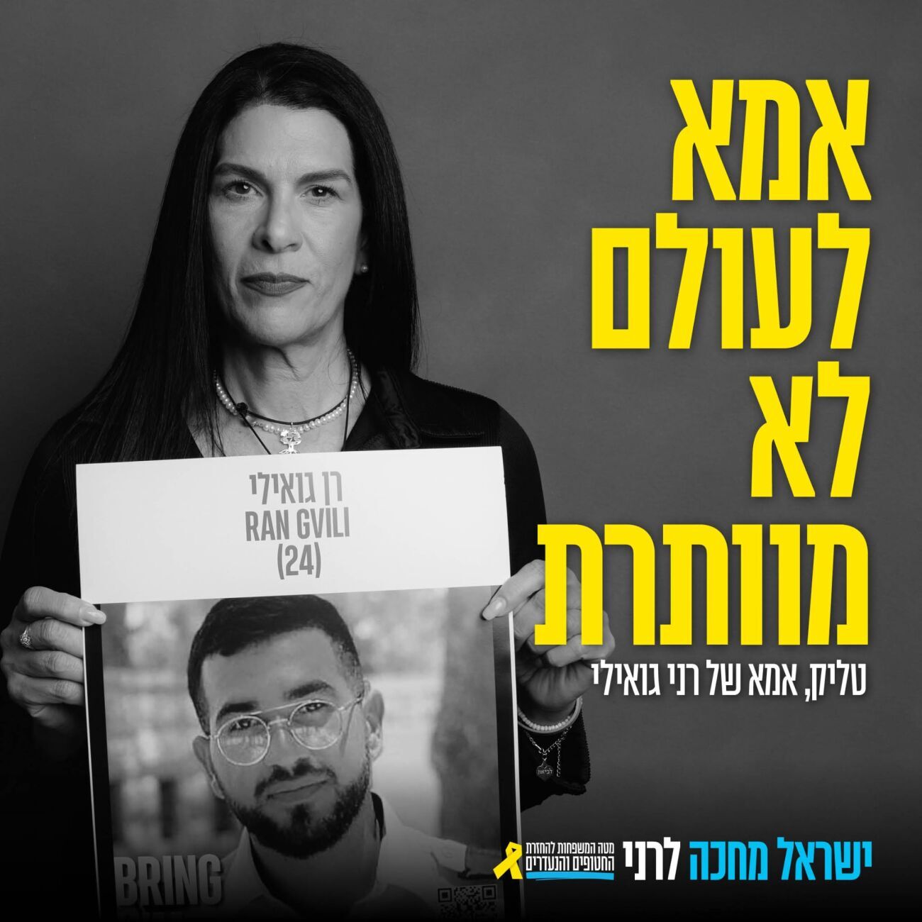 גדרה: ניבה ונקרט מצטרפת לקמפיין "אמא לעולם לא מוותרת" שעולה מחדש ומוקדש לרן גואילי, החטוף האחרון שנותר בשבי