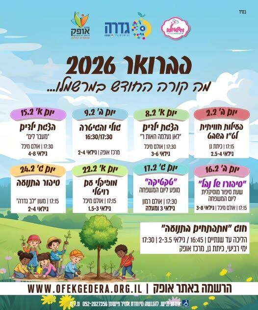 במסגרת הלו"ז החודשי, יתקיימו אירועים ברוח חגי ומועדי ישראל, בהם פעילות חווייתית לכבוד ט"ו בשבט ופעילויות המוקדשות ליום המשפחה.