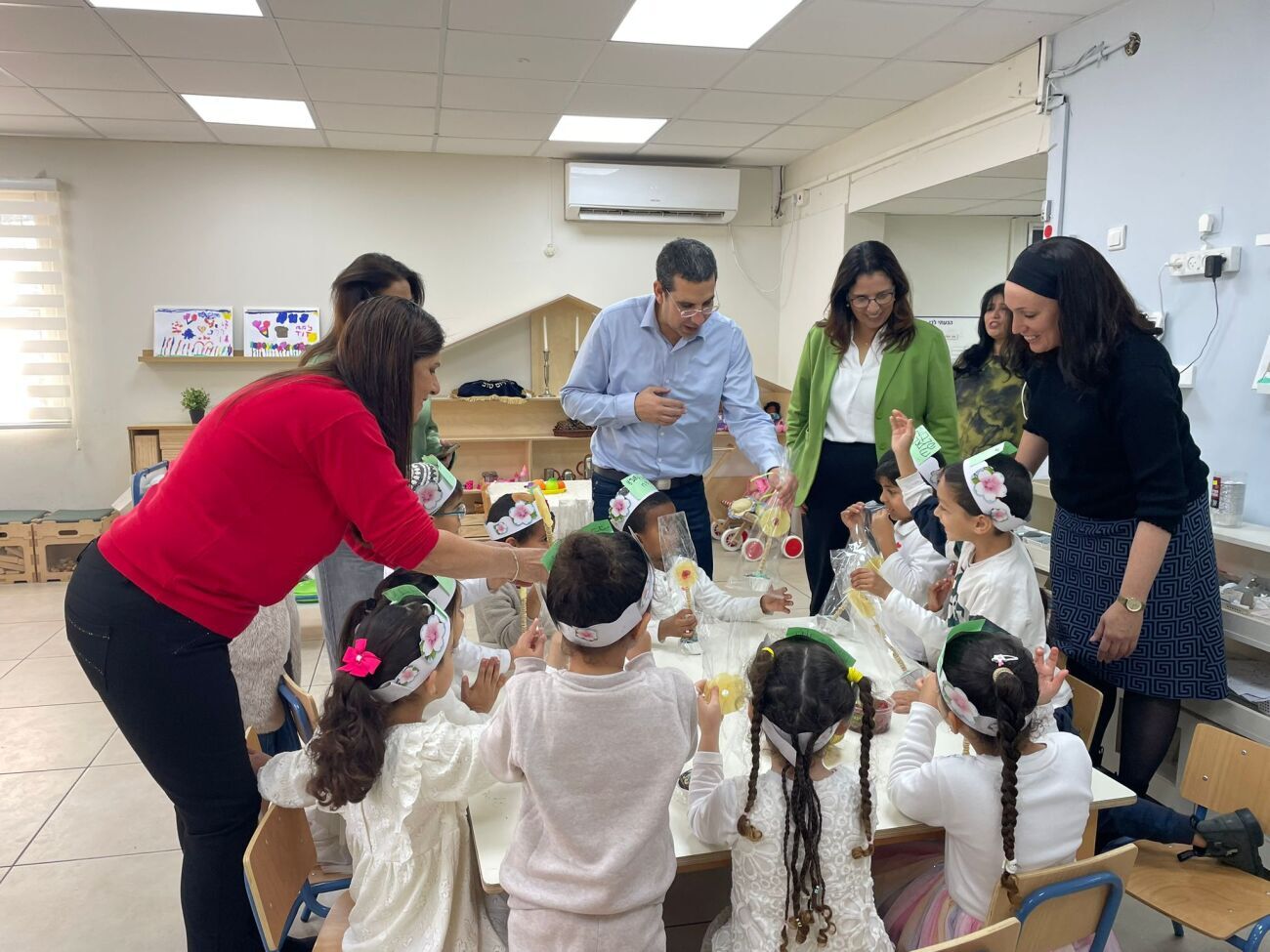 לאחר מכן, המשיך הסיור למספר גני ילדים ברחבי גדרה. ראש המועצה פגש את ילדי המושבה, השתתף בפעילויות החג ואף הצטרף לשירת שירי ט״ו בשבט באווירה חגיגית.