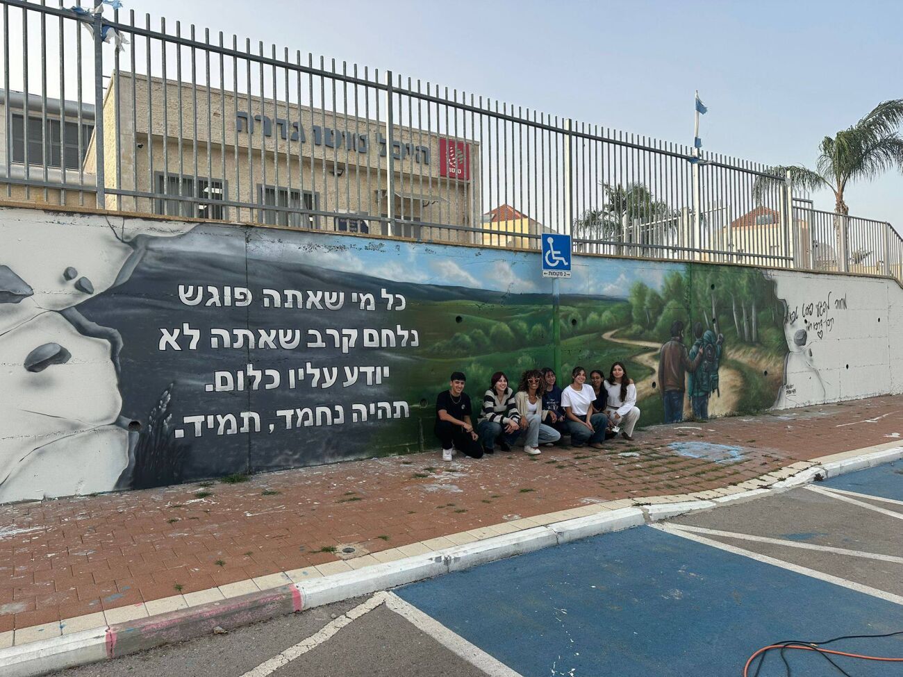 ציור קיר חדש ומרגש בתיכון דרכא רמון בגדרה: האמן בנצי ברופמן יצר מחווה עוצמתית לנפגעי פוסט טראומה באולם הספורט