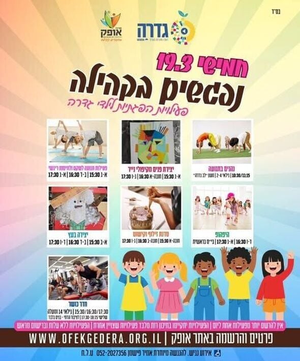 פעילויות הפגה חינמיות לילדים ולנוער בגדרה: כל הפרטים על אירועי היום (חמישי, 19.3)