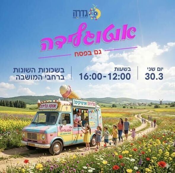פעילות הפוגה לפסח בגדרה (30.3): אוטוגלידה יסייר מחר בין השכונות ברחבי המושבה