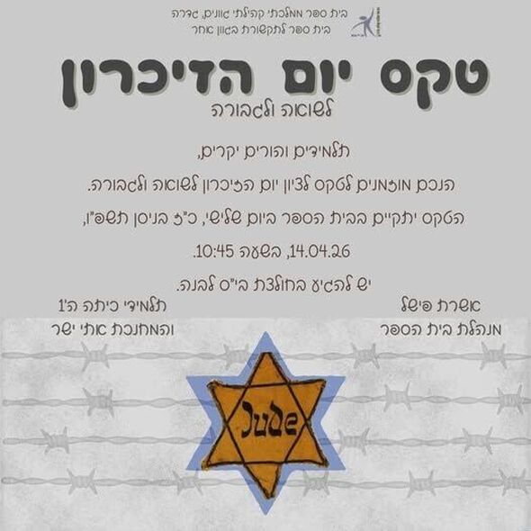מחר (14.04.2026): טקס לציון יום הזיכרון לשואה ולגבורה בבית ספר "גוונים" בגדרה