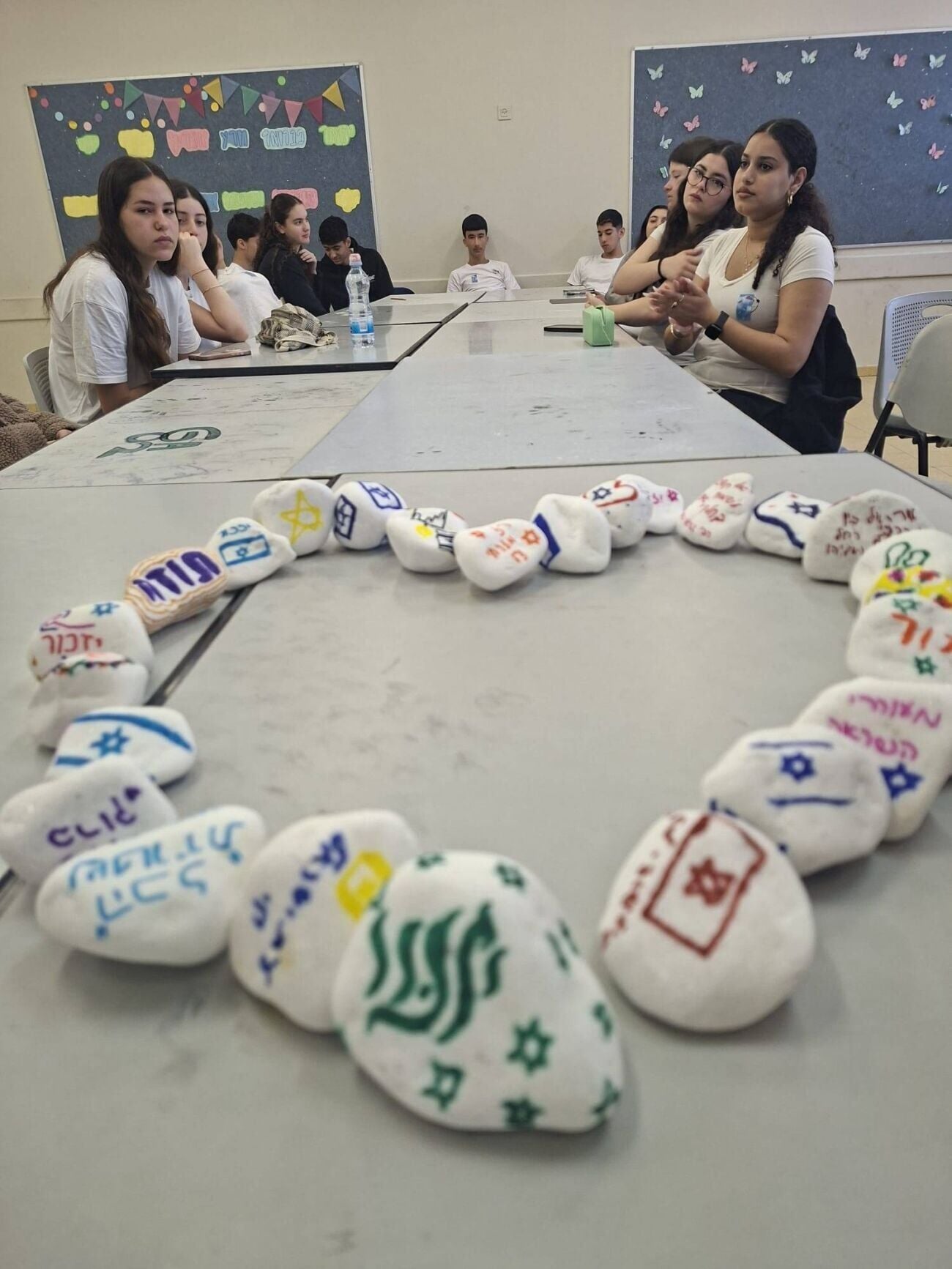 במקביל, תלמידי שכבת י' ערכו פעילות הנצחה ייחודית ויצרו את המיצג "לכל אבן יש שם". במסגרת הפעילות, עיטרו התלמידים אבנים עם כיתובים, סמלי מגן דוד ושמות, אשר הונחו יחד והצטרפו למיצג זיכרון מרגש.