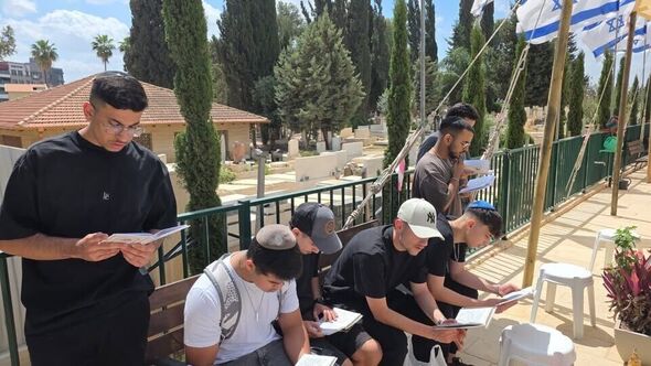 תלמידי תיכון נתיבי נועם דרכא בגדרה פקדו את החלקה הצבאית בבית העלמין בערב יום הזיכרון ושמעו על גבורת אל"מ לאון בר ז"ל