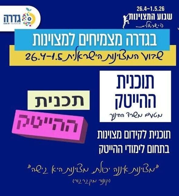 גדרה נבחרה להשתתף בתוכנית ההייטק הלאומית של משרד החינוך