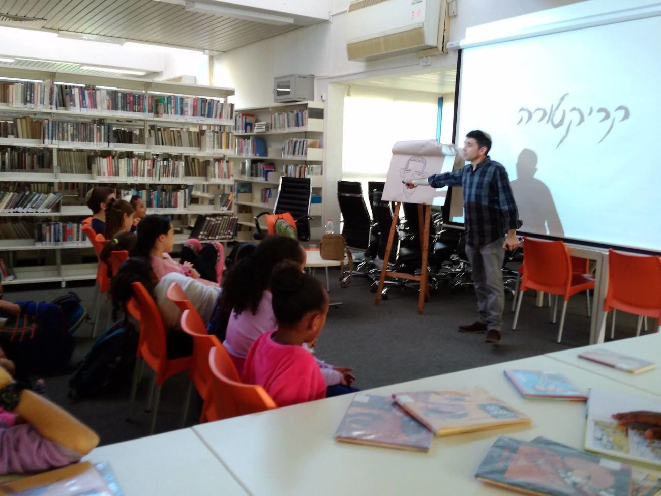 הסופר והמאייר שי צ'רקה הגיע לספריית גדרה ונפגש עם תלמידי ביה"ס "אוהל שלום" והכיר להם את עולם הקומיקס