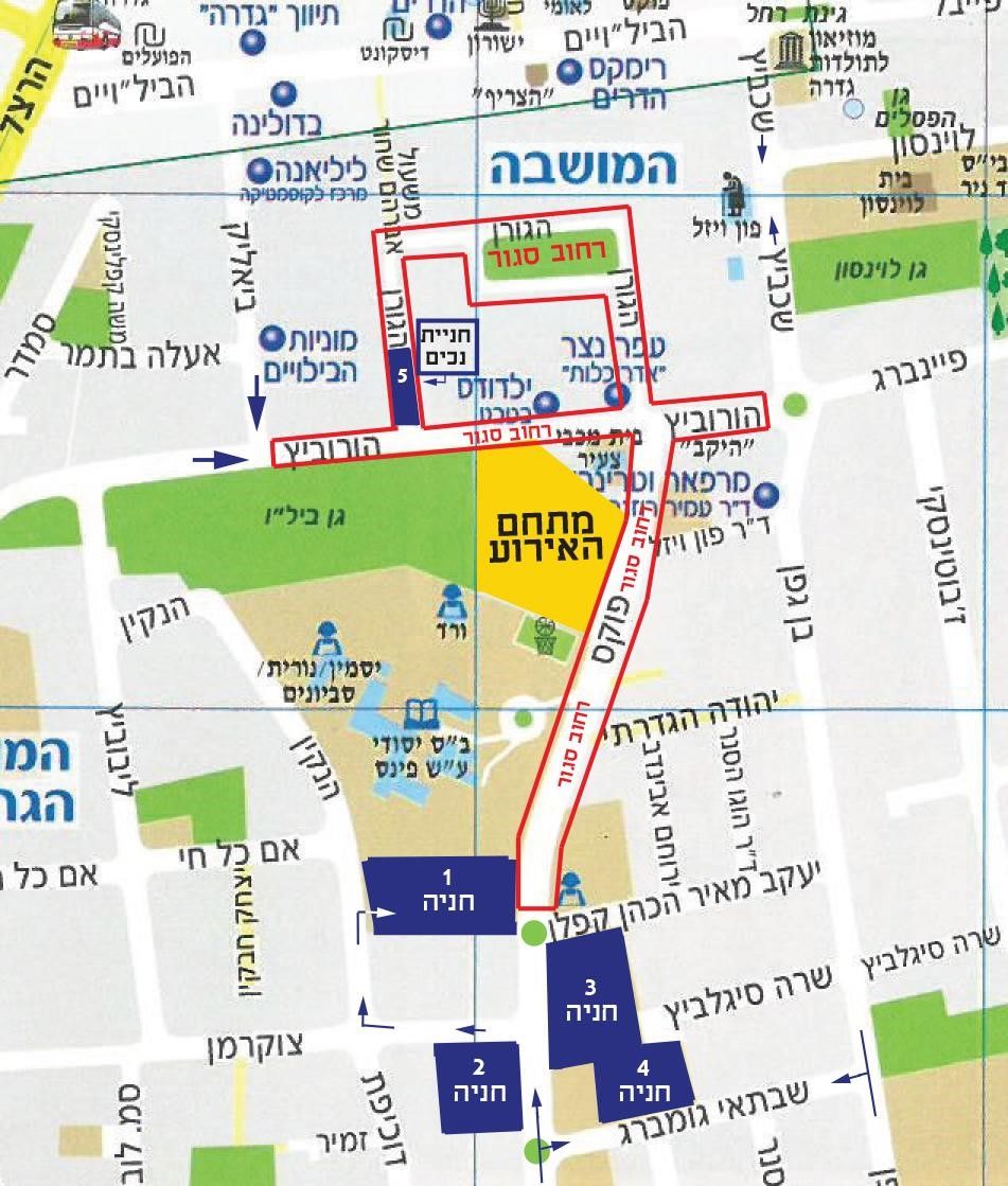 הכבישים ייסגרו בין השעות 16:00-01:00. לרשות התושבים הוכשרו חניונים ברחוב הפוקס