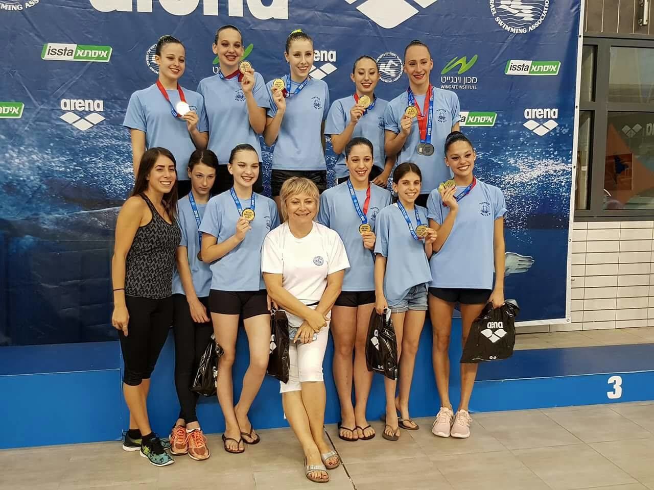 השחייניות טל קישינבסקי וניקול צצרסקי מגדרה זכו יחד עם קבוצתן במקום הראשון והשני באליפות ישראל לבוגרות בשחייה אומנותית