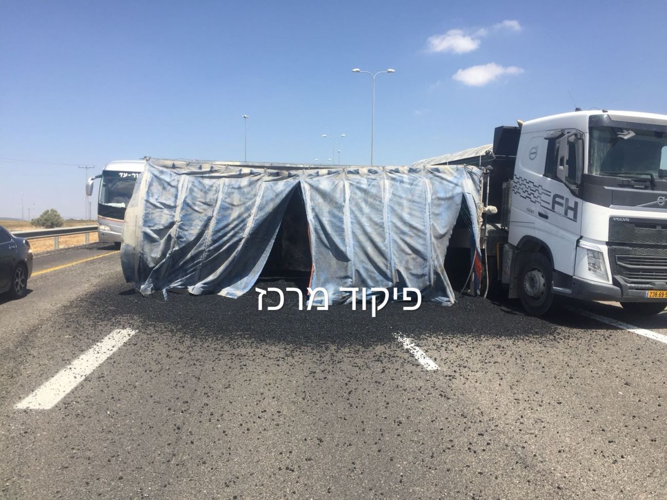 מבזק תאונה! משאית התהפכה ליד גדרה