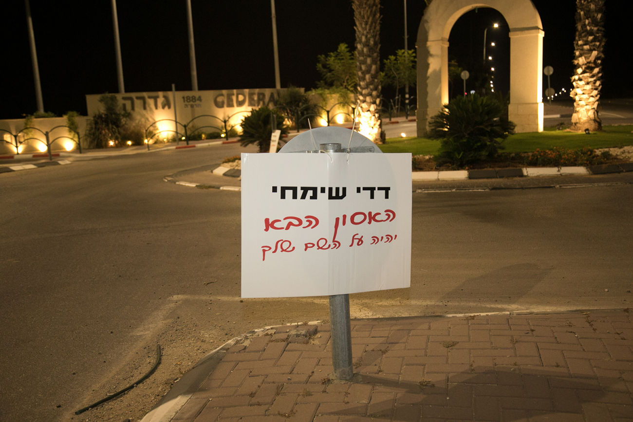 גדרה הוצפה בשלטי מחאה נגד נציב כבאות והצלה דדי שמחי המתגורר בגדרה