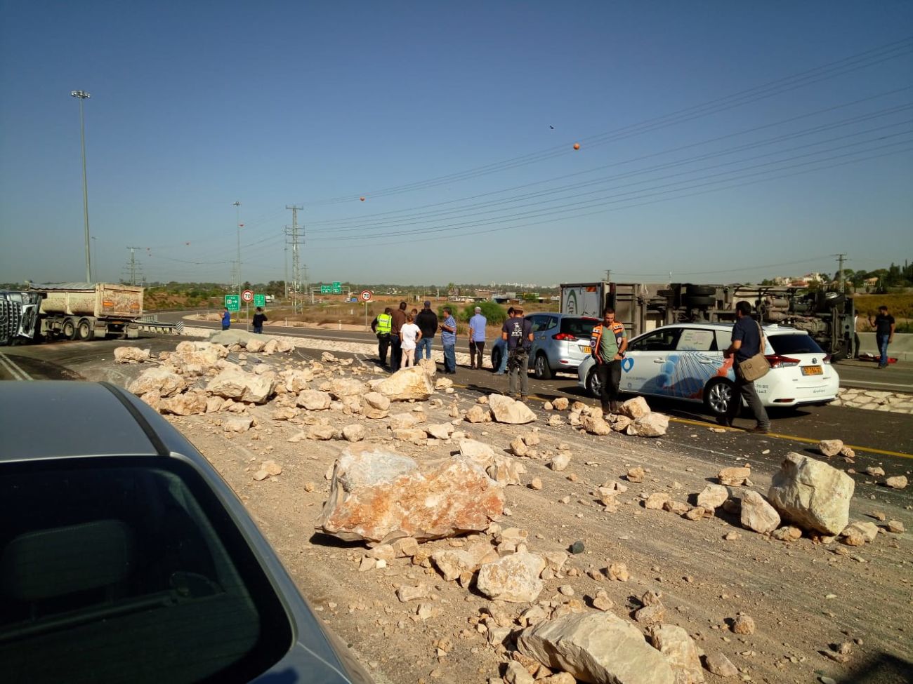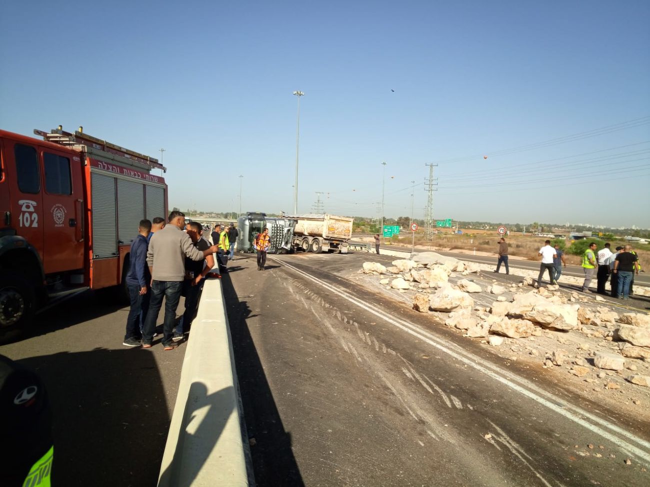 שתי משאיות התהפכו על צדן בכביש 7 בירידה למחלף גדרה.