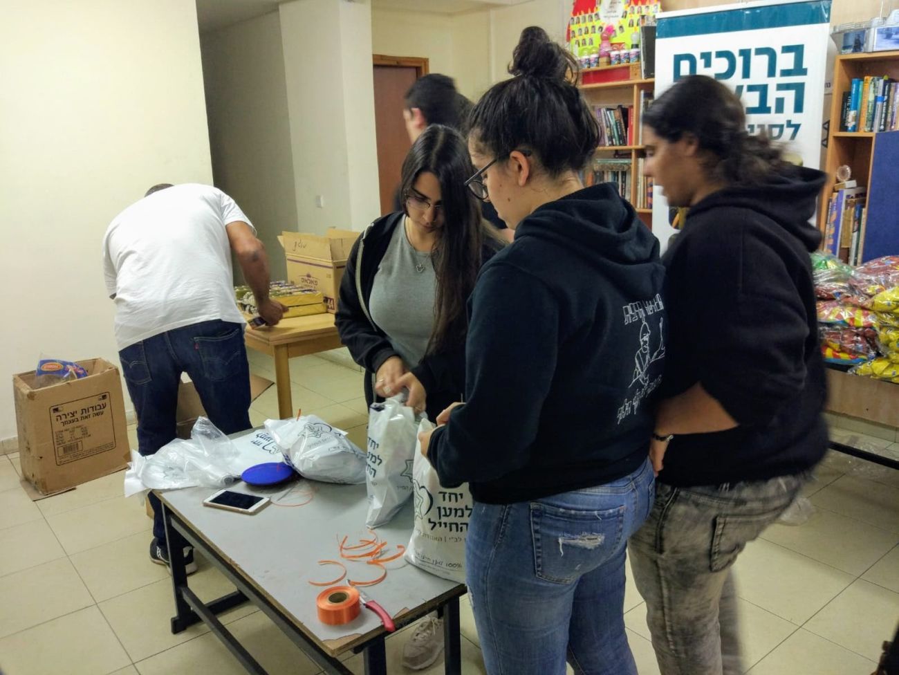 חברי אינטראקט של מועדון רוטרי הבילויים הגיעו למשרד האגודה והכינו מארזים מתוקים ועמוסי ממתקים לחיילים.