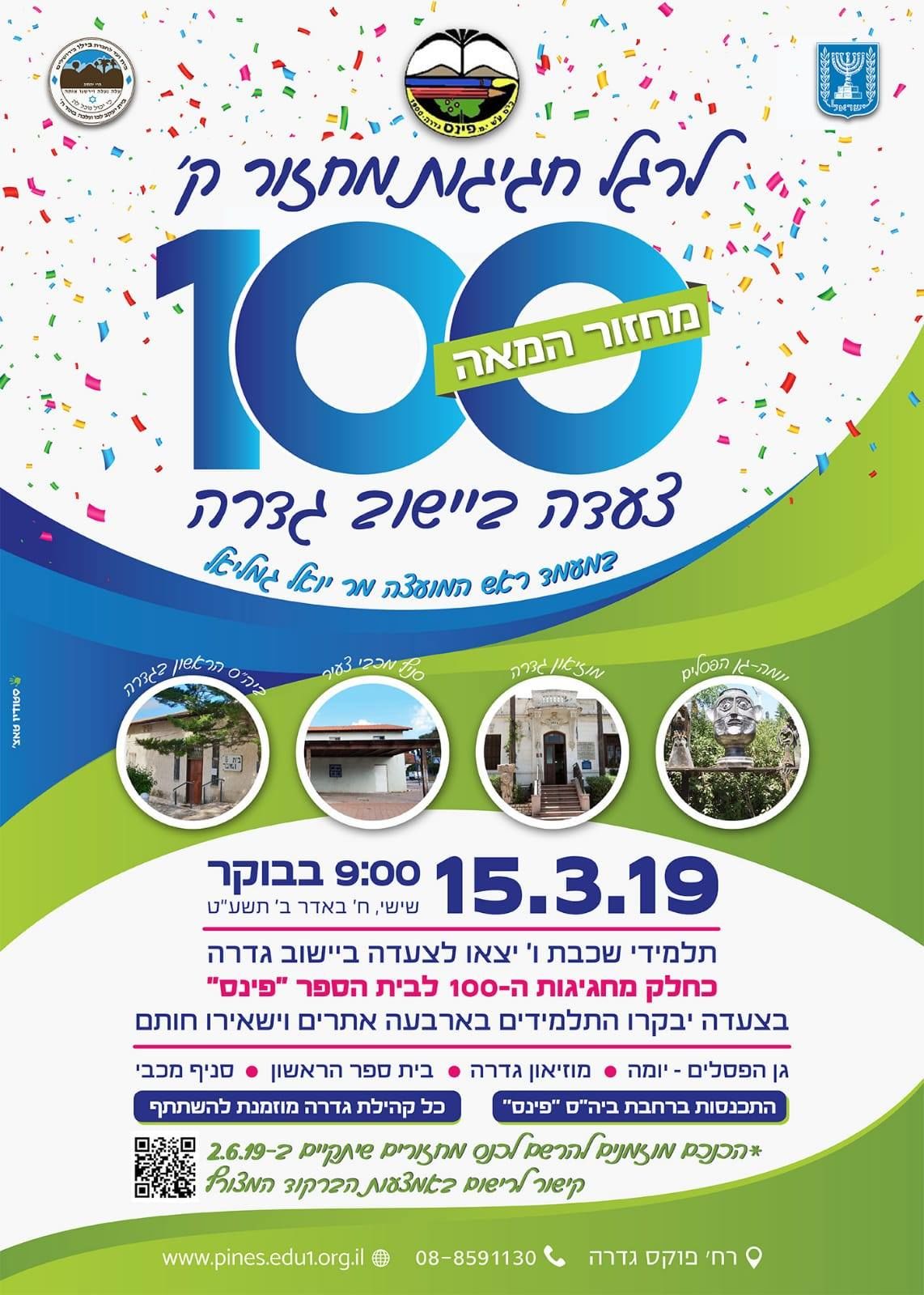 ביום שישי 15/3 צעדה בגדרה! לרגל חגיגות מחזור ה100 של ביה"ס פינס גדרה ייצאו תלמידי כיתות ו' לצעדה ברחבי המושבה הציבור מוזמן