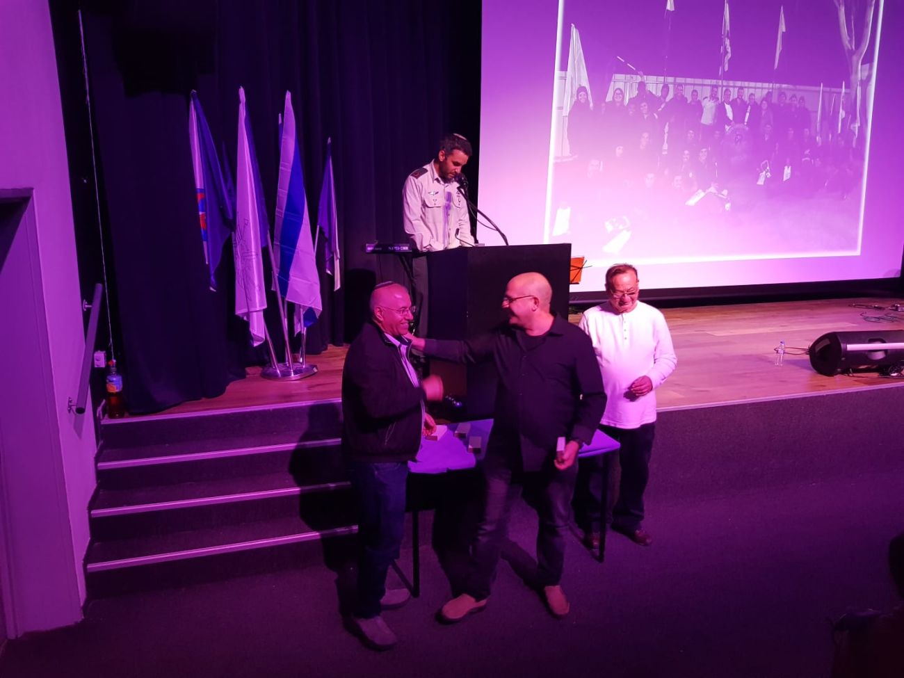 "אחים סגולים, חברים לדרך, ותיקים וחדשים, אני שמח על הזכות שנפלה בחלקה של הפלוגה לקחת חלק בערב מעורר השראה זה בגדרה, המאמצת אותנו משנת 1998".